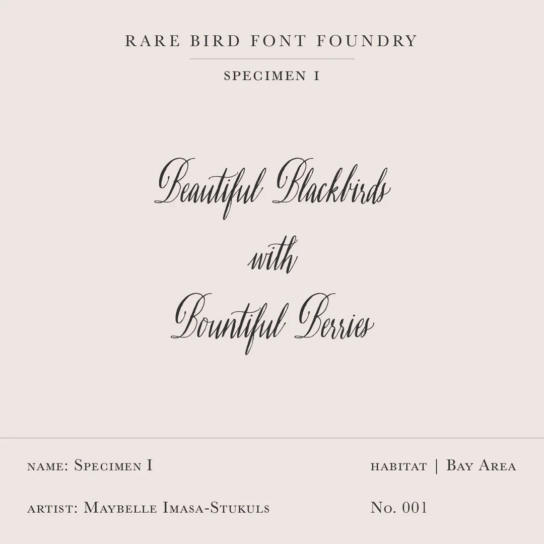 Specimen I stands on its own. Its subtle nuances make it stand out in a flock of fonts. It is easily recognizable, but it is never one to be too showy. Give Specimen I plenty of white space, so every quirk and curve can be noted.